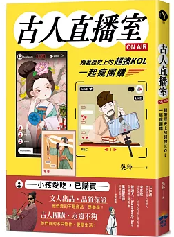 本書將歷史名人搬上現代直播舞台,用幽默比喻把蘇軾、李白、楊貴妃、乾隆等人的文化趣味與生活美學,「團購」給現代讀者。 作者吳玲巧妙結合知識性與娛樂性,既能學到古人的風雅人生,也讓歷史變得親切有趣,是一部適合歷史迷與跨世代文化愛好者輕鬆品讀的作品。 |